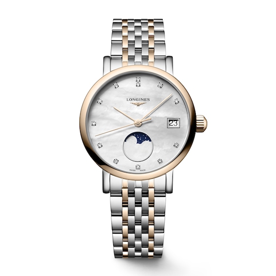 Longines Elegant Women's Diamond 18ct Rose Gold & Stainless Steel Watch